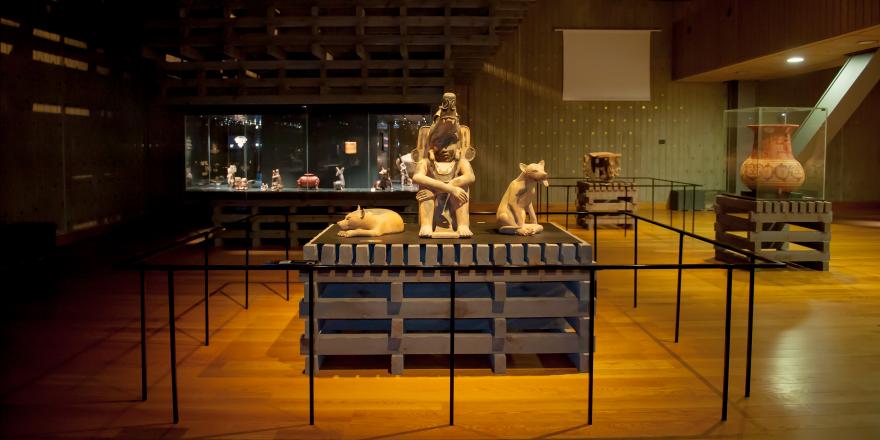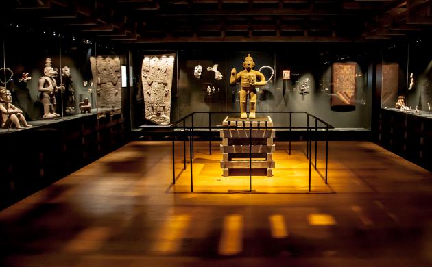 Deze verzameling bestaat uit meer dan 400 precolumbiaanse voorwerpen in goud, jade, steen, textiel en schelp. De collectie is in binnen- en buitenland bekend voor haar topstukken. De voorwerpen zijn afkomstig uit meer dan 50 culturen, van Alaska tot Chili, en getuigen van het vakmanschap en de zin voor esthetiek van hun makers in het Amerika van voor 1500. Bij de bewoners van het Amerikaanse continent waren er ontzettend veel verschillen, maar hun visie op de wereld om hen heen vertoont ook opvallend veel gelijkenissen. Zo zien we hoe mensenoffers als essentieel gezien werden om de continuïteit tussen leven en dood te waarborgen en hoe op het hele continent vruchtbaarheidsrituelen diverse vormen aannamen maar altijd de kern vormden van de pre-Spaanse leefwereld. Precieuze grafgiften, vaak in goud, weerspiegelen het belang dat alle bewoners van het continent, van Alaska tot Chili, hechtten aan het leven na de dood.